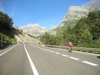 Pistoletazo de salida. Salimos escopeteados, como una bandada de pájaros asustados por un potente petardo. Volamos. Circunvalamos Sabiñánigo a no menos de 45-50 km/h. Aguanto bien, a rueda del grupo de cabeza. No distingo bien a la gente que nos anima y nos aplaude. Vamos muy rápido. El pueblo se ha volcado, como siempre. Afrontamos las interminables rectas de los llanos de Jaca, cada vez más deprisa. El pulso se me acelera. No bajo el ritmo. Este año voy a por todas y quiero el oro. A velocidad de vértigo nos plantamos en Canfranc. Hasta aquí he llegado. Ahora empieza a endurecerse el puerto y ya no puedo seguir más este ritmo infernal. Levanto el pie y dejo escapar no menos de 500 fenómenos que no corren, vuelan dirección a la primera cima del día. Serán los quebrantahuesos que se jugarán entre ellos la victoria. Me despido de ellos. Ya no los volveré a ver en todo el día.